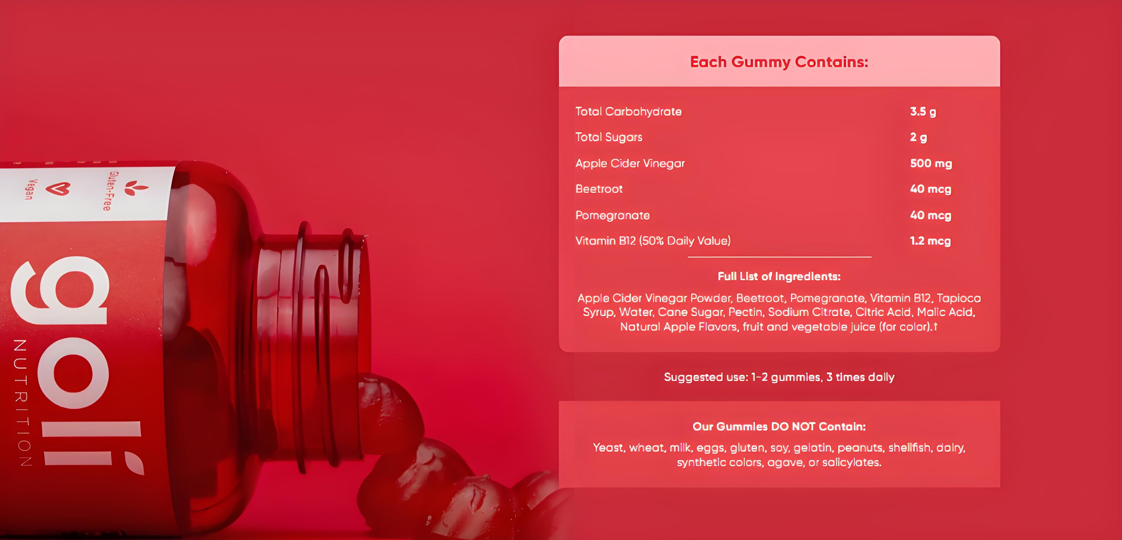 Goli® ACV Gummies contain Vitamin B12 which helps convert the food you eat into cellular energy.